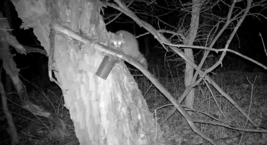 Автоматические фотокамеры запечатлели одновременно двоих особей, вероятно, самку с детёнышем. Животных привлек запах мяса, разложенного работниками заповедника в специально оборудованной кормушке на дереве. Ранее еноты в данной местности не встречались, подобная картина наблюдалась также в соседних регионах.